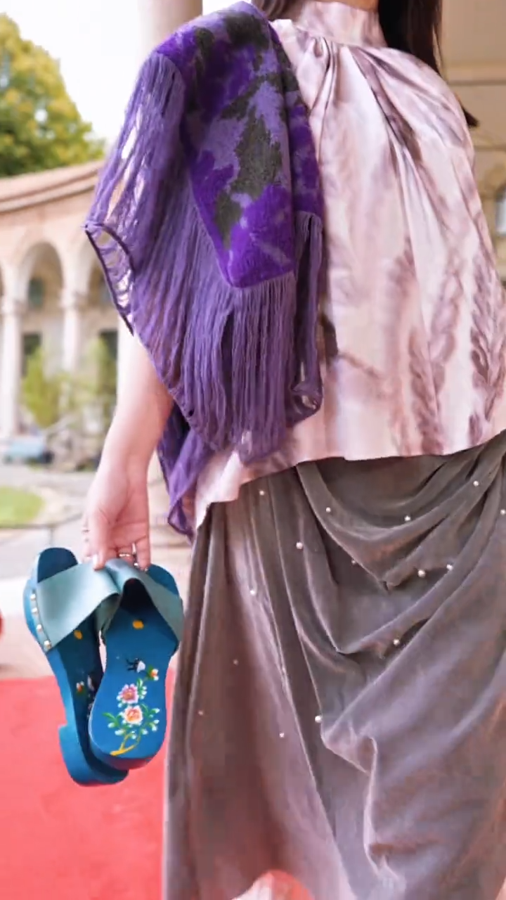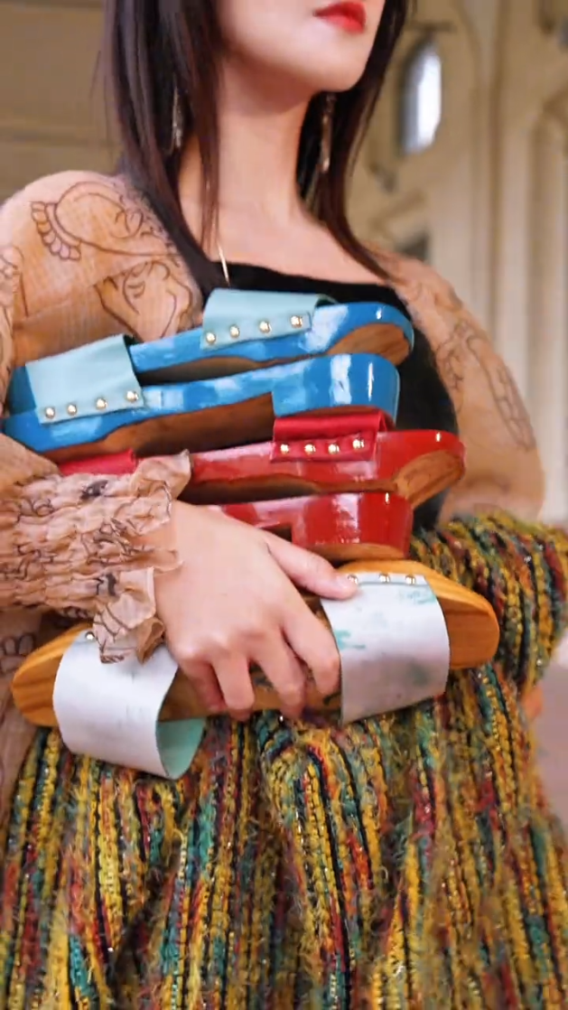 而这次蓝盈莹带着巨型非遗木屐亮相米兰